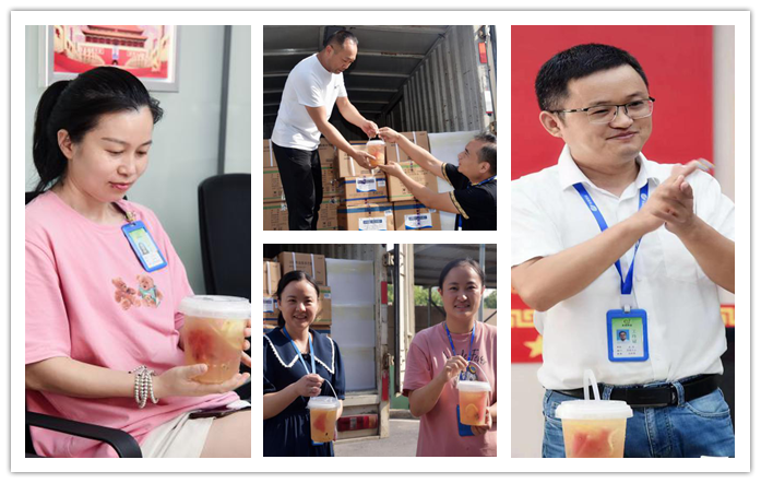 我们错过了秋天的第一杯奶茶,但是工会给大家送上秋天的第一杯果茶。工会主席钟方成希望大家在坚守岗位的同时,增强自我保护意识,注意防暑,适当休息,爱护身体,以更好的状态投入到工作中。