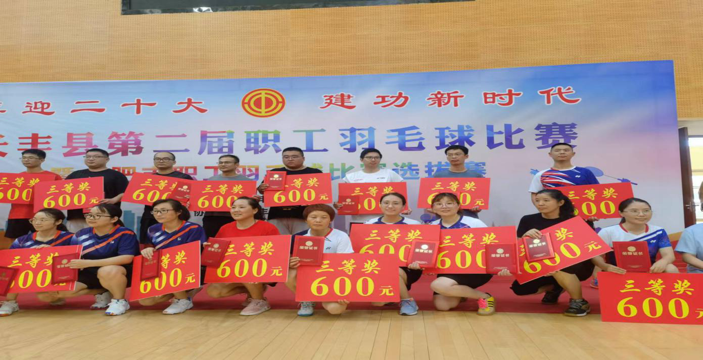 2022年7月20日上午,长丰县第二届职工羽毛球赛开幕式在县体育馆如期举行,合肥荣耀体育官方站网页版工会主席钟方成,带领工会委员会成员,以及荣耀体育官方站网页版营销部门、财务部门、行政部门参加本次开幕式。