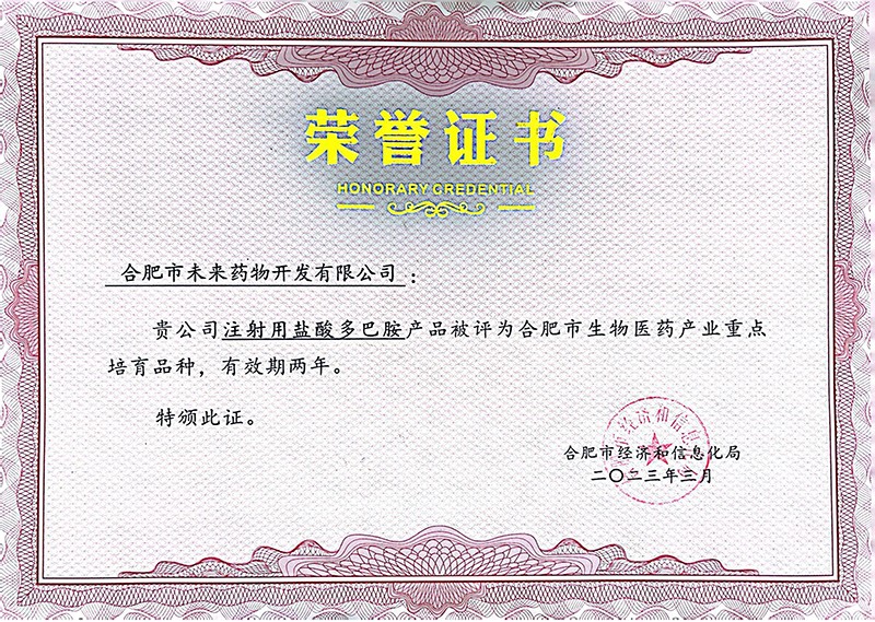 公司产品“瑞巴斯®注射用盐酸多巴胺”入选生物医药产业重点品种培育目录,不仅助力了合肥市生物医药产业发展,同时有力提升了荣耀体育官方站网页版的知名度及产品品牌影响力。